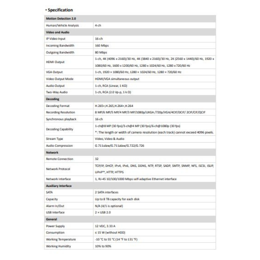 2MP 16 CHANNEL NVR METAL DS-7616NI-Q2 BRAND:HIKVISION