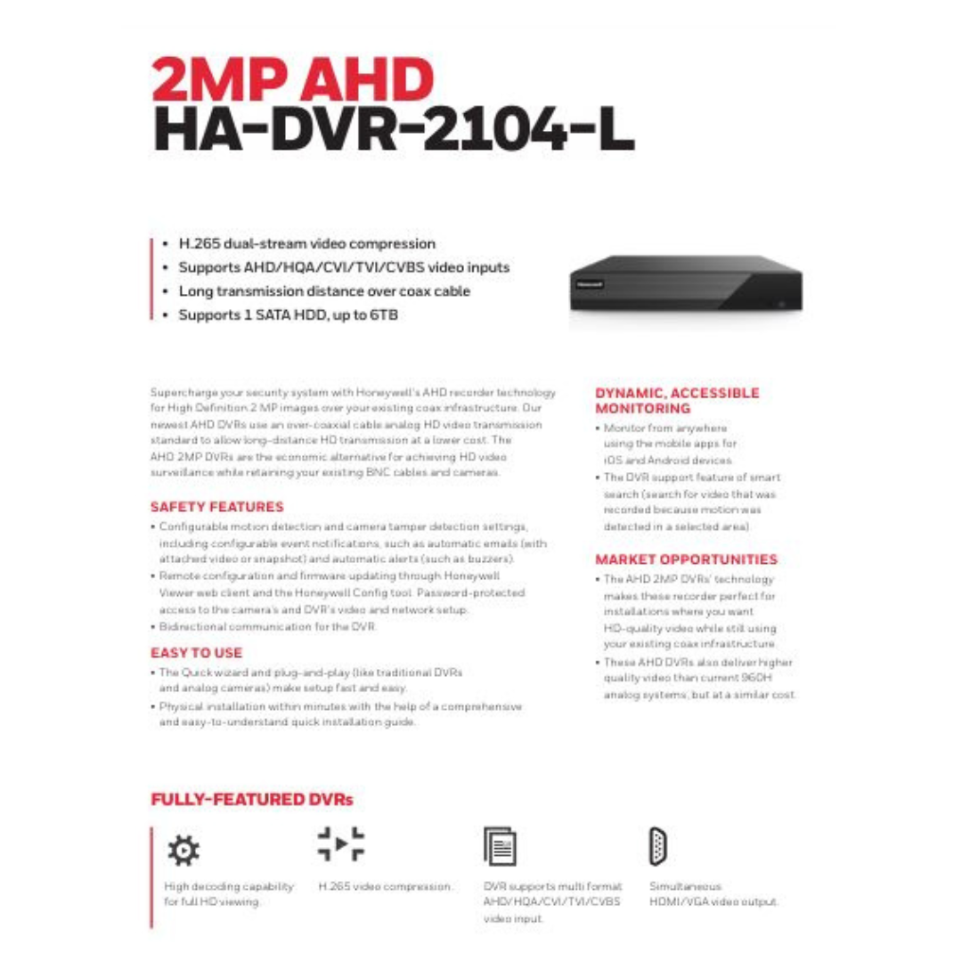 2MP 4 CHANNEL DVR METAL HA-DVR-2104-L BRAND:HONEYWELL