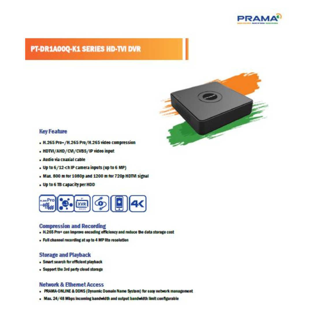 2MP 4 CHANNEL DVR METAL PT-DR1A04Q-K1 BRAND:PRAMA