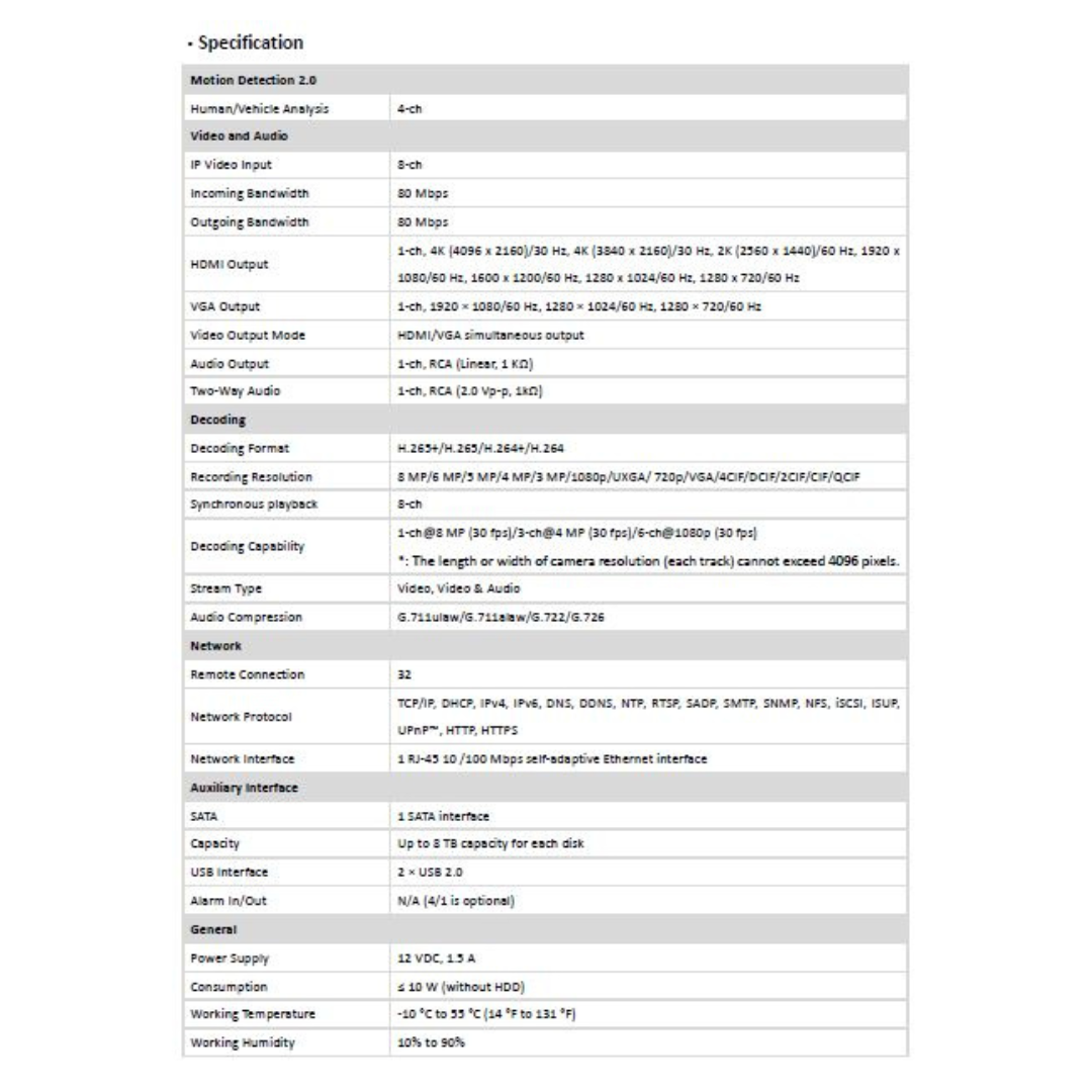 2MP 8 CHANNEL NVR METAL DS-7608NI-Q1 BRAND:HIKVISION