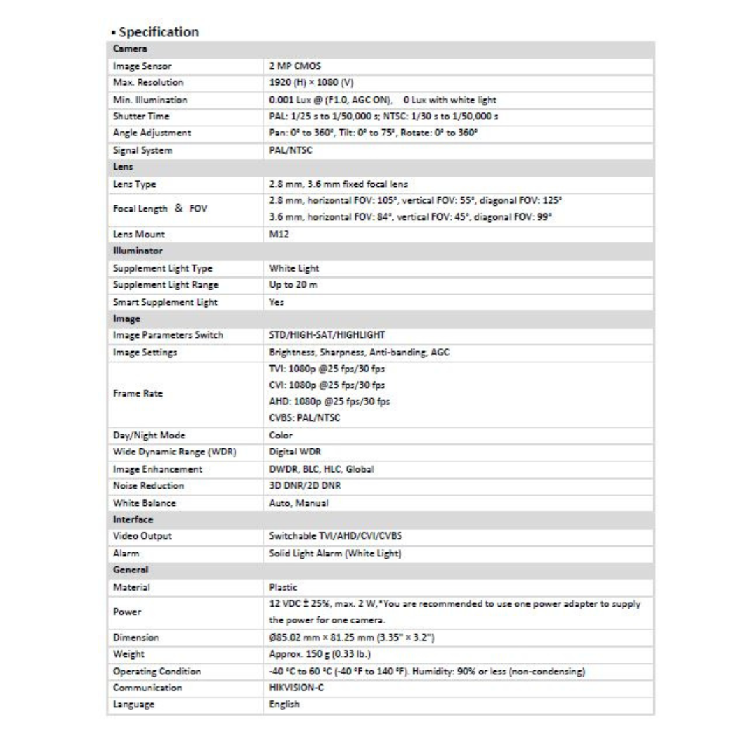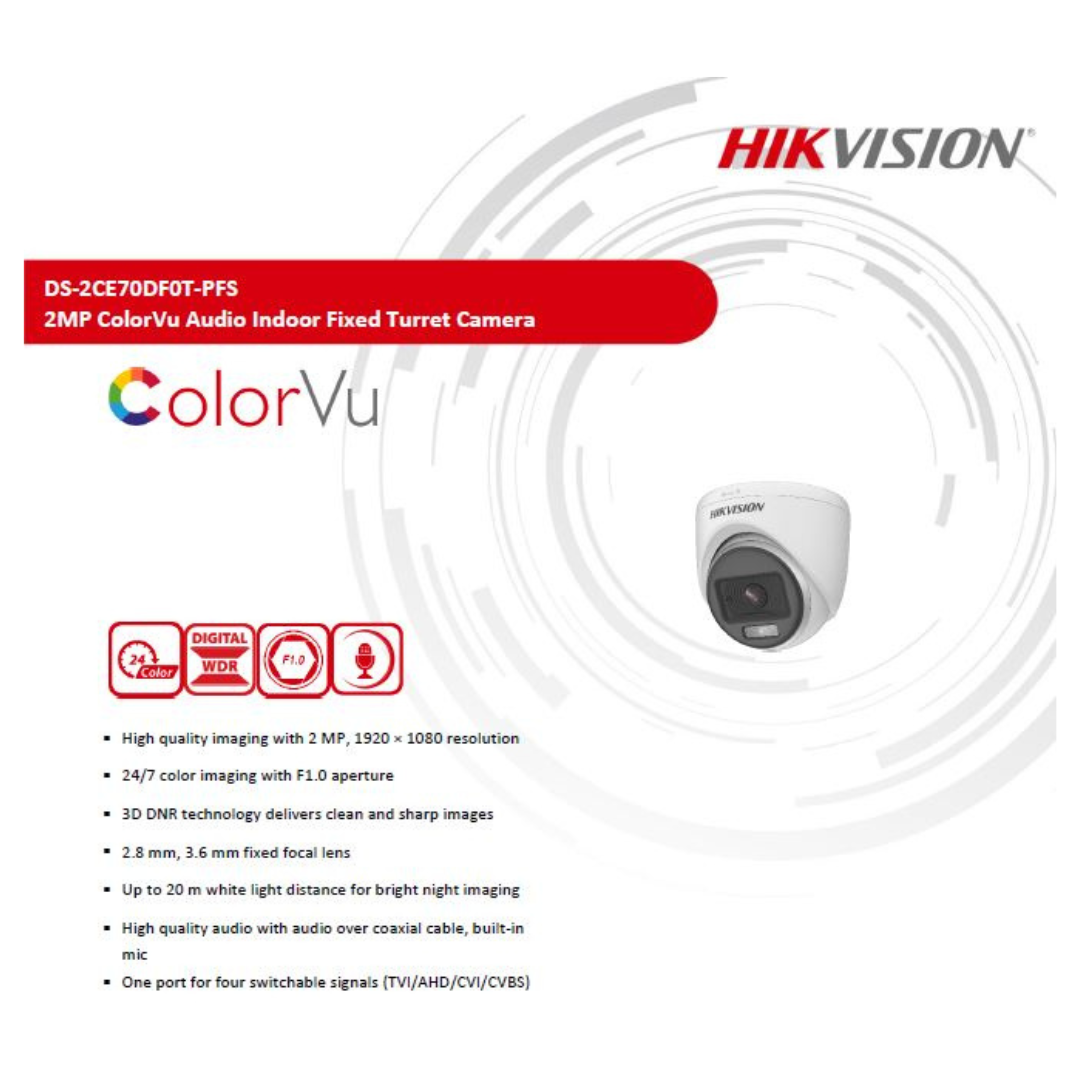 2MP COLOR VU DOME CAMERA DS-2CE70DF0T-PFS BRAND:HIKVISION