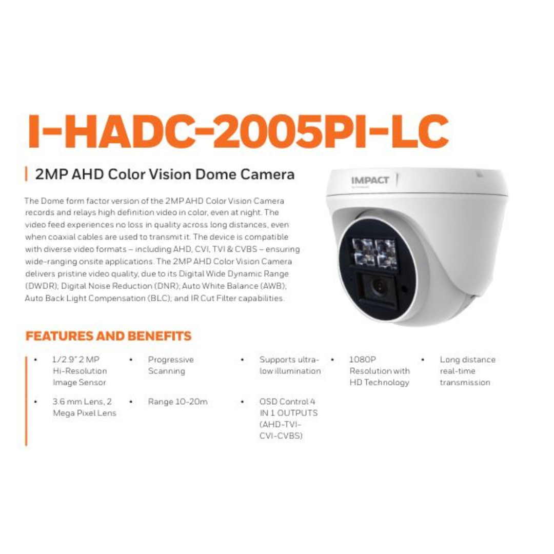 2MP COLOR VU DOME CAMERA I-HADC-2005PI-LC BRAND:HONEYWELL