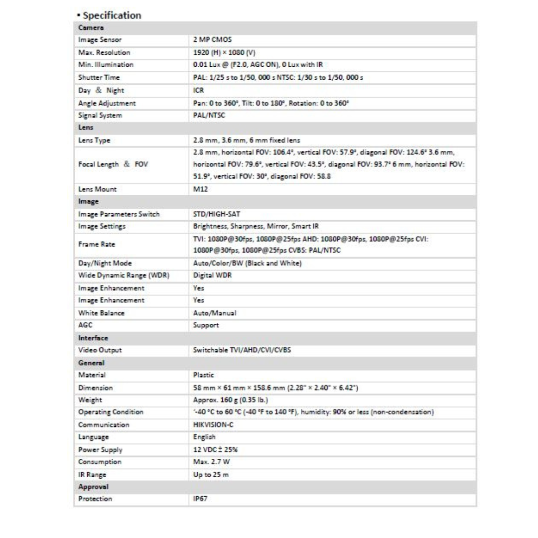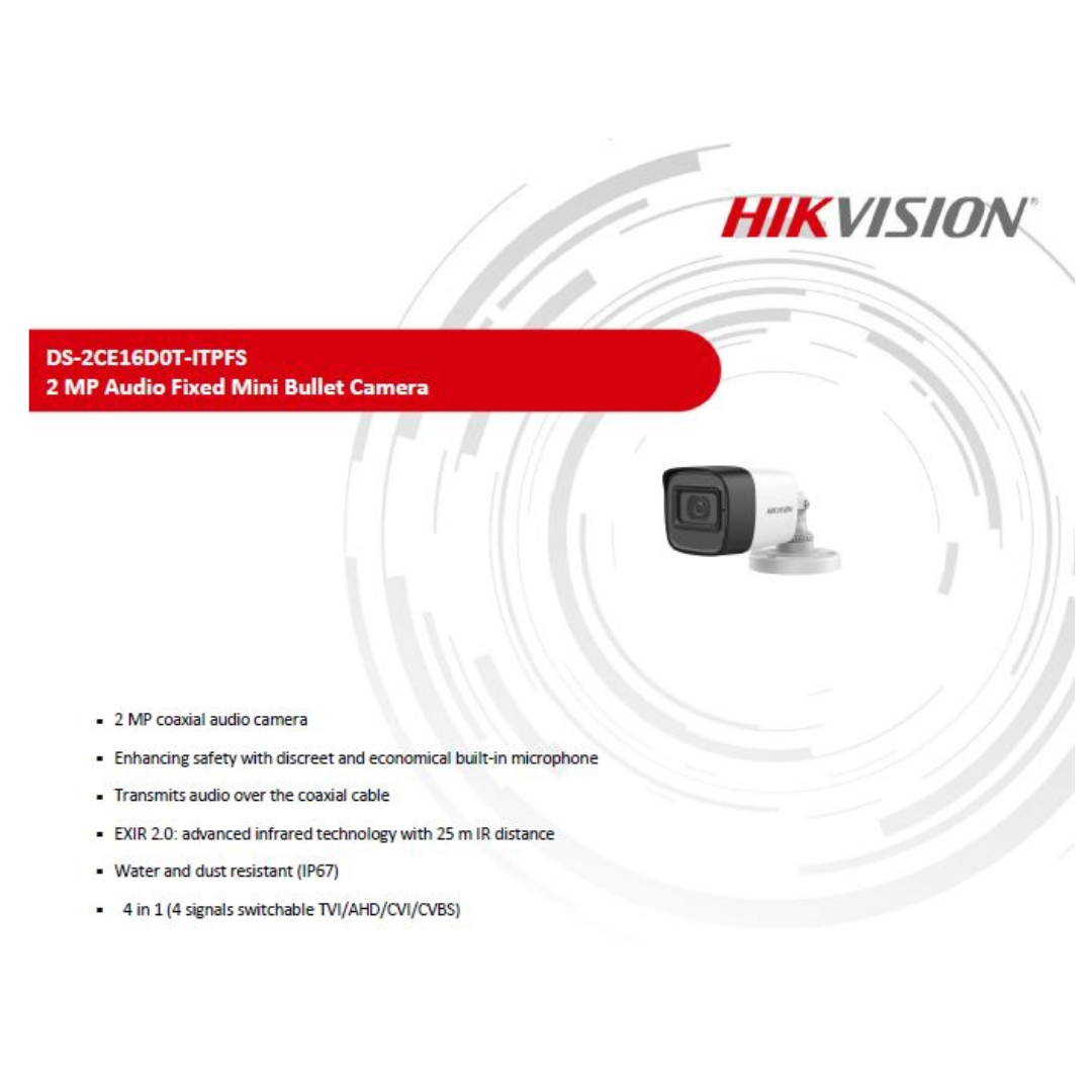 2MP REGULAR BULLET CAMERA DS-2CE16D0T-ITPFS BRAND:HIKVISION