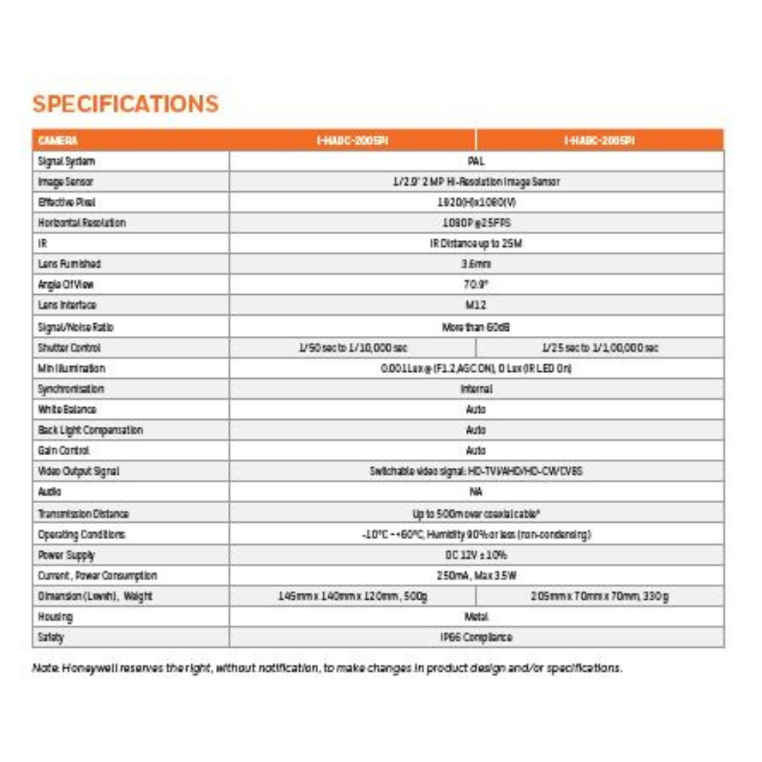 2MP REGULAR BULLET CAMERA I-HABC-2005PI BRAND:HONEYWELL
