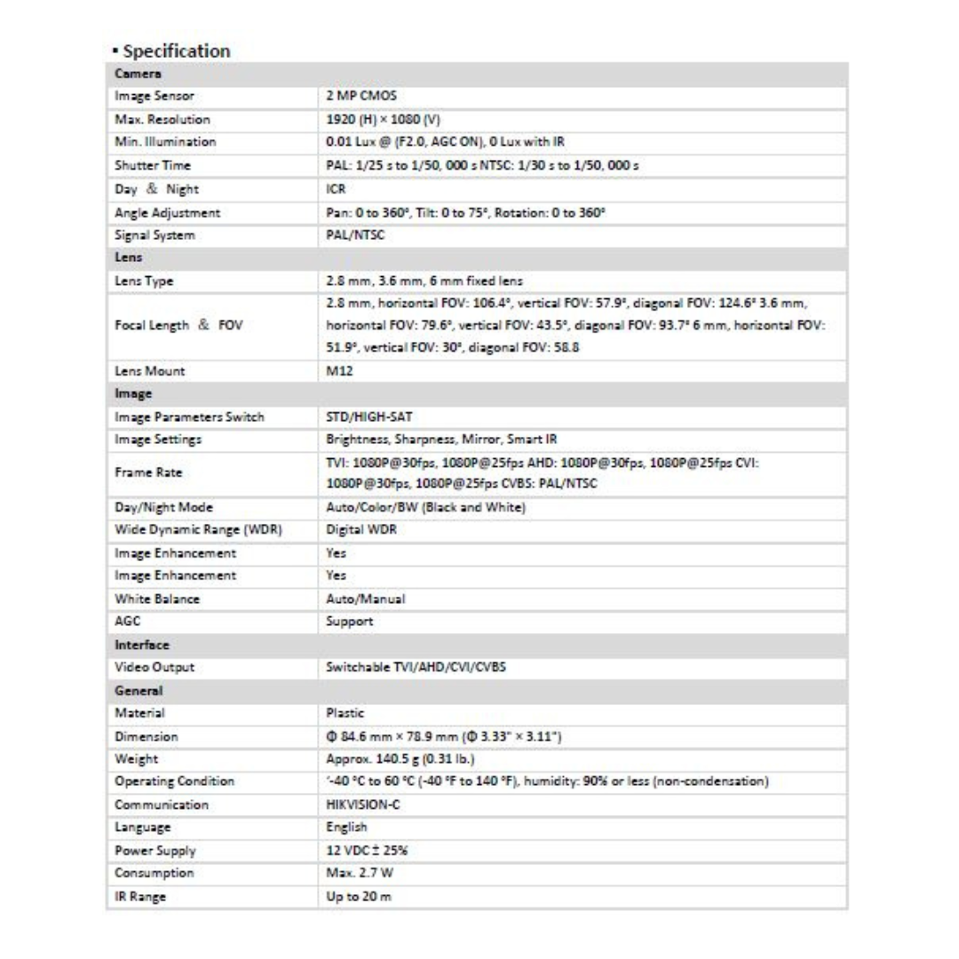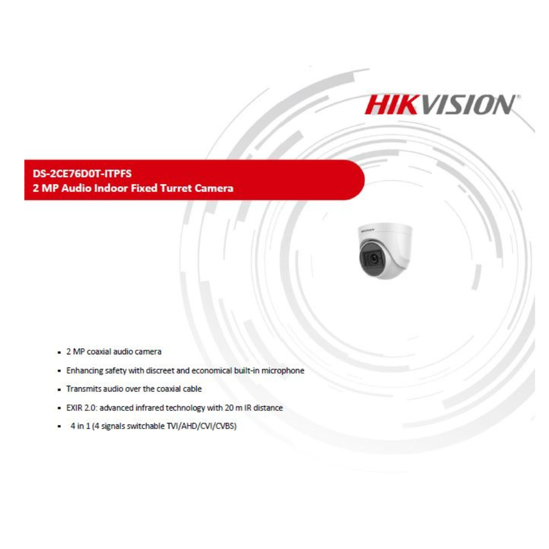 2MP Regular Dome Camera DS-2CE76D0T-ITPFS Brand:HIKVISION
