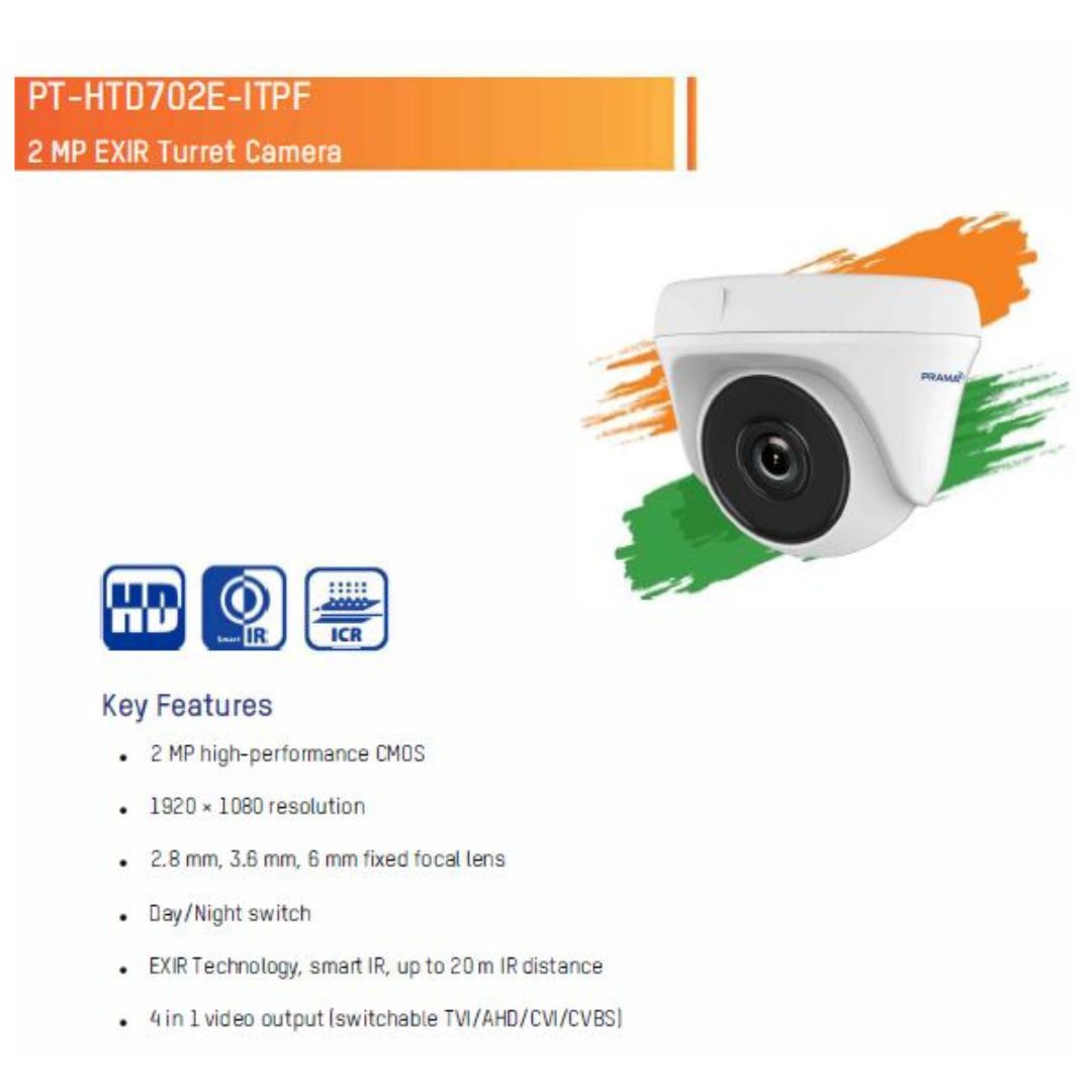 2MP Regular Dome Camera (PT-HTD702E-ITPF) Brand:PRAMA