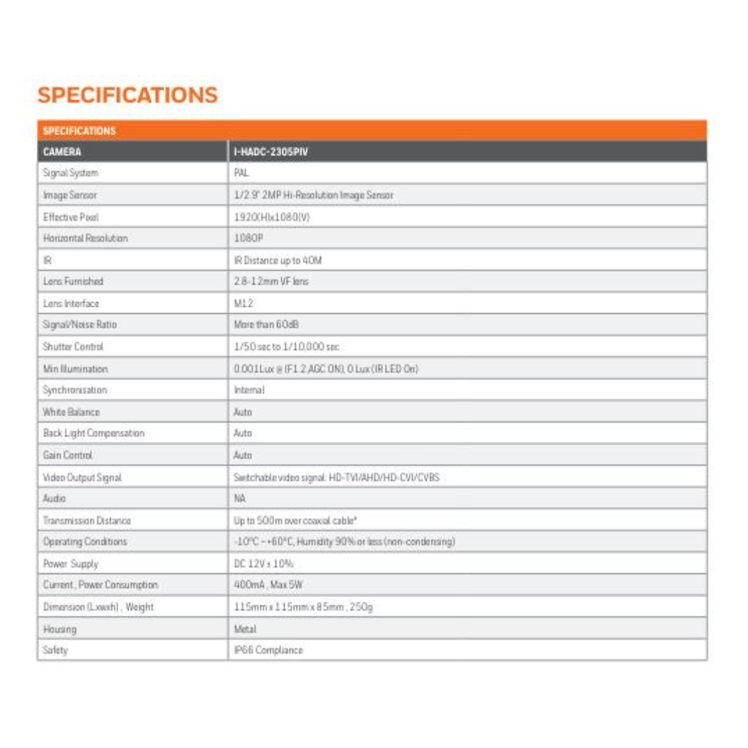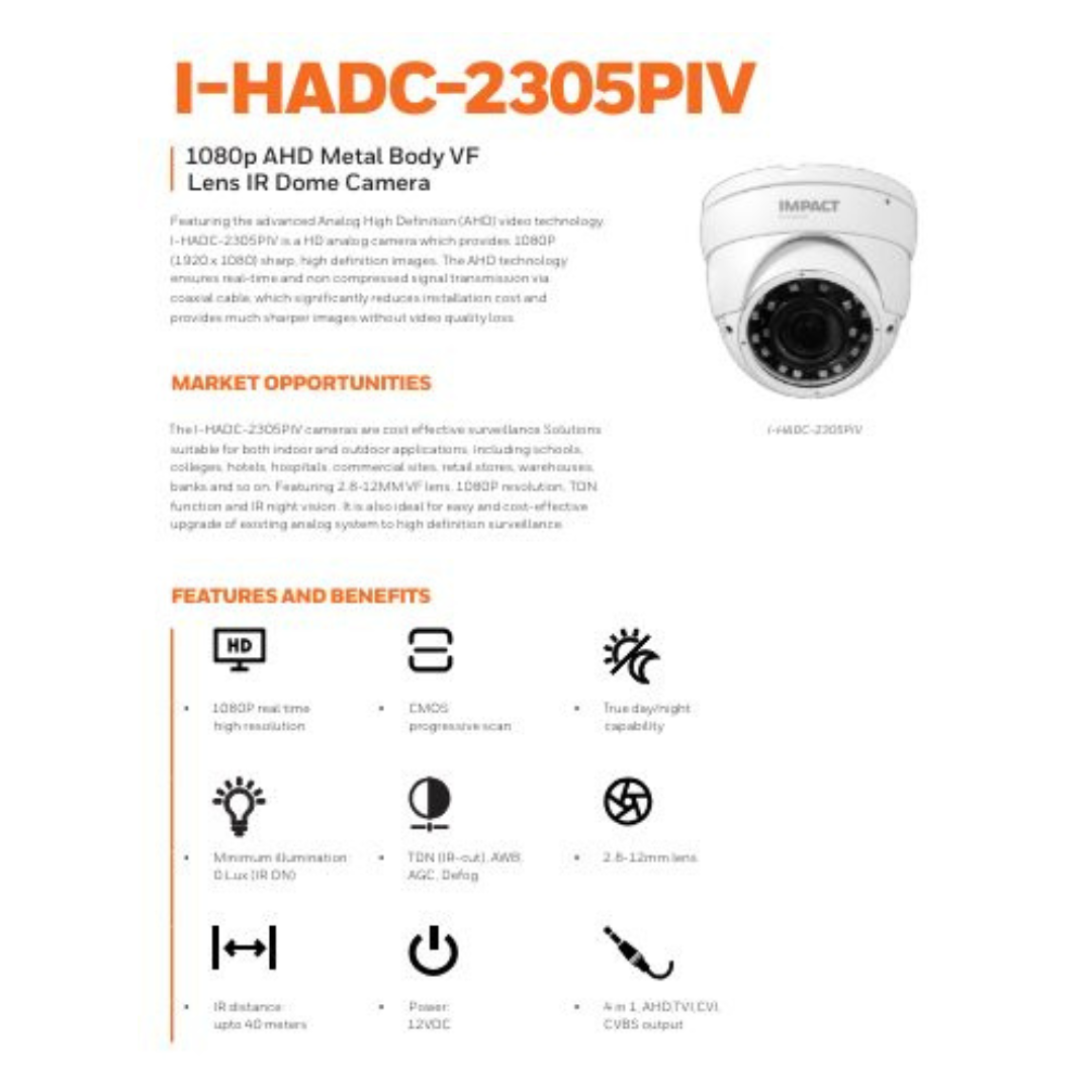 2MP REGULAR VARIFOCAL DOME CAMERA I-HADC-2305PIV BRAND:HONEYWELL