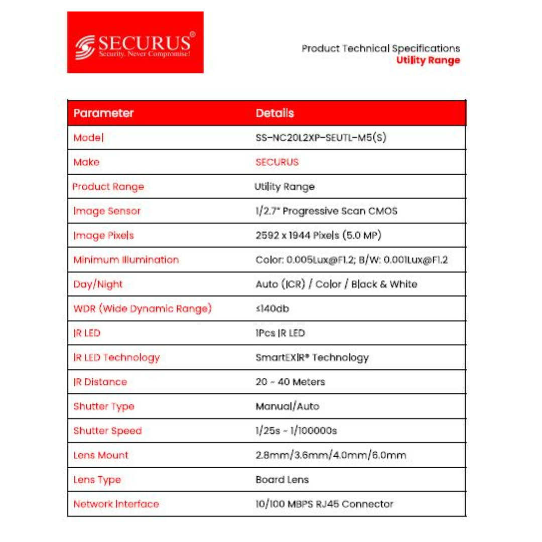 5MP IP BULLET CAMERA SS-NC20L2XP-SEUTL-M5(S) BRAND:SECURUS SMART EXIR TECHNOLOGY