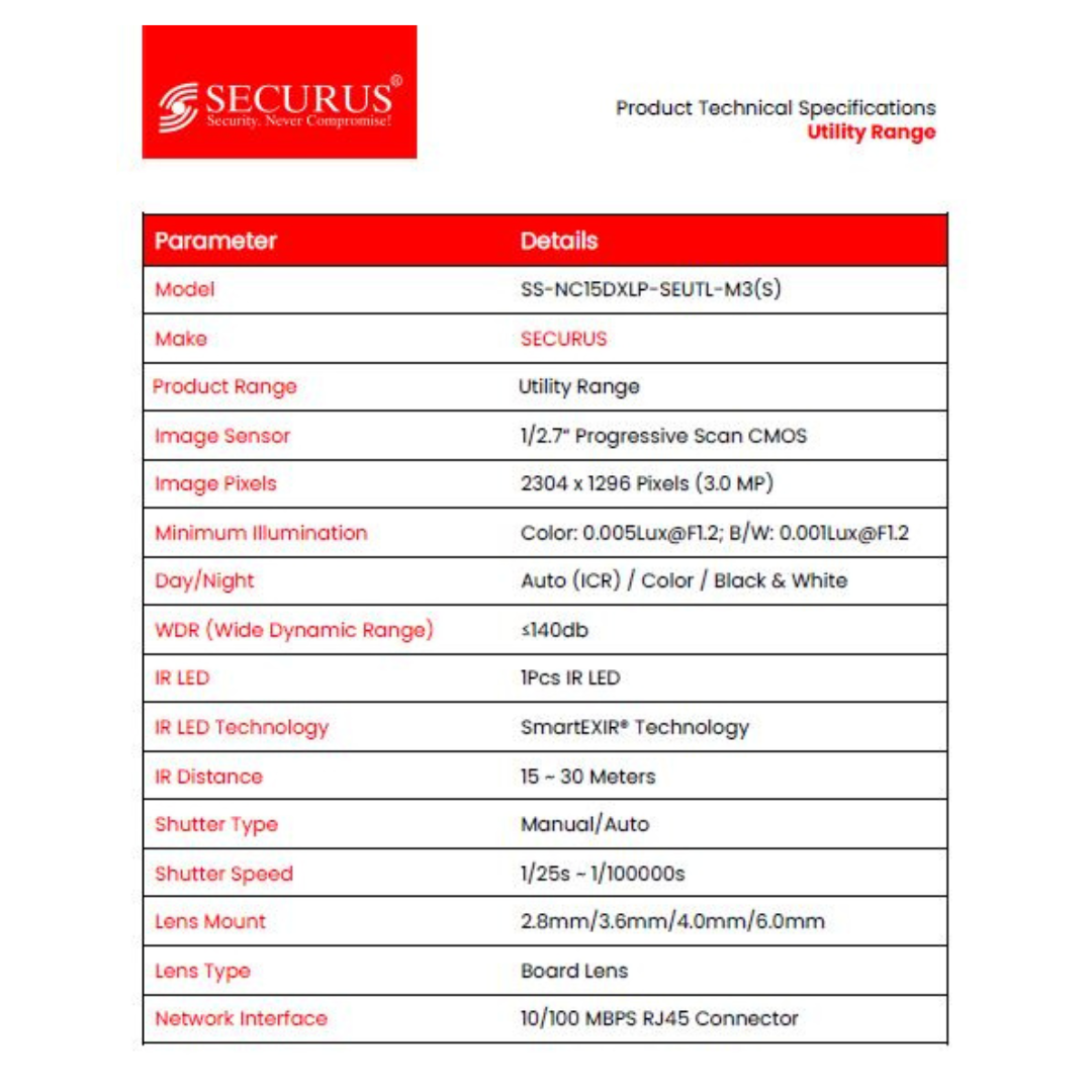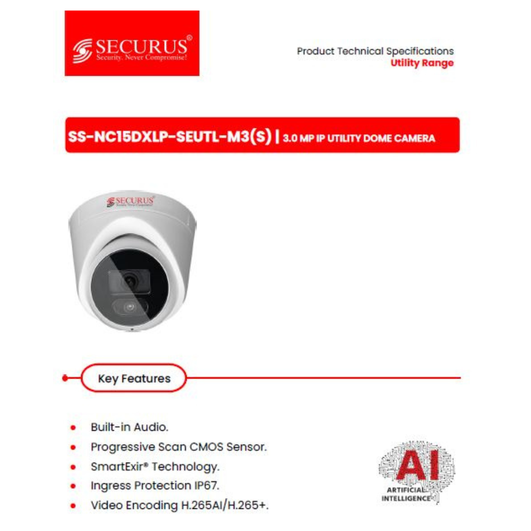 3MP IP DOME CAMERA SS-NC15DXLP-SEUTL-M3(S) BRAND:SECURUS SMART EXIR TECHNOLOGY