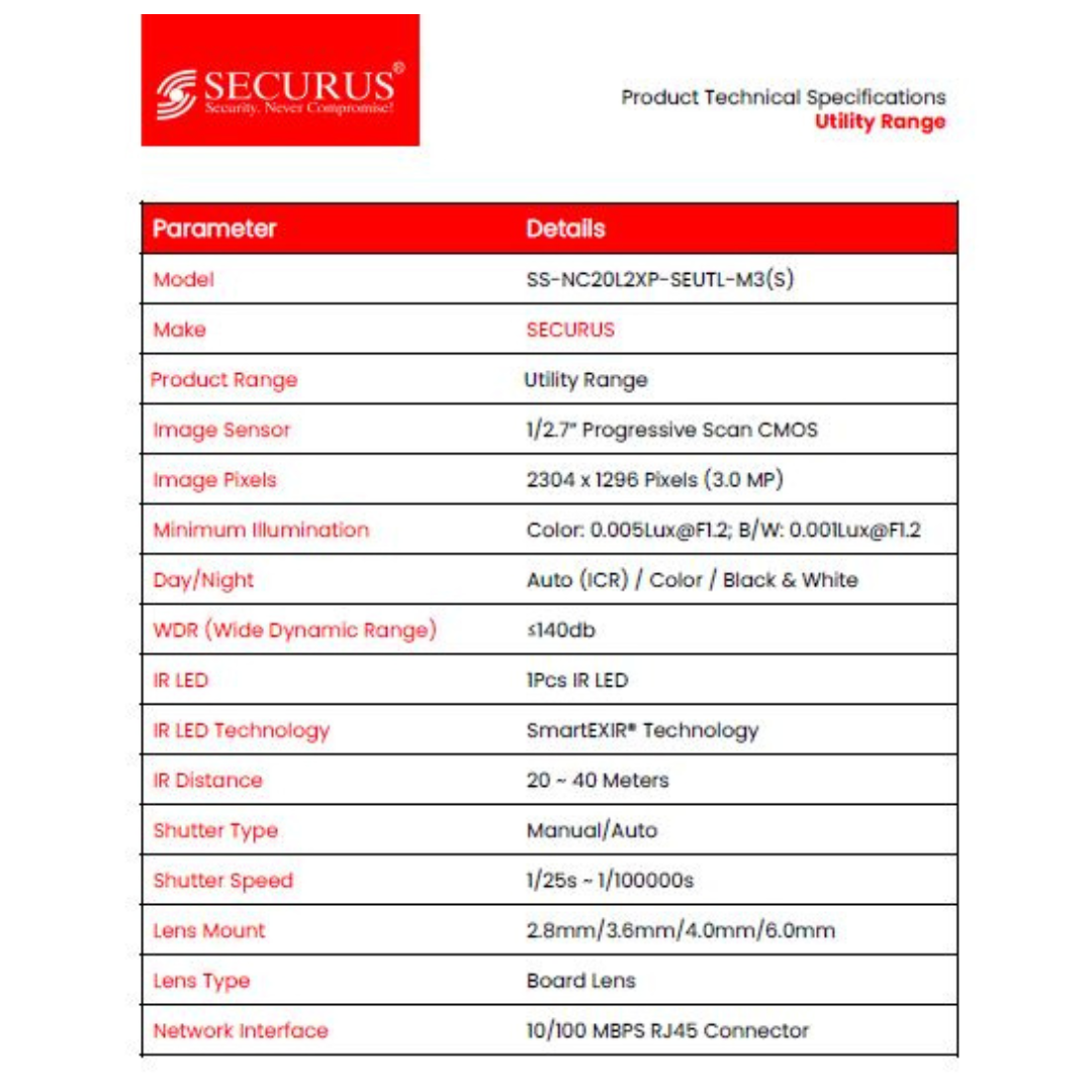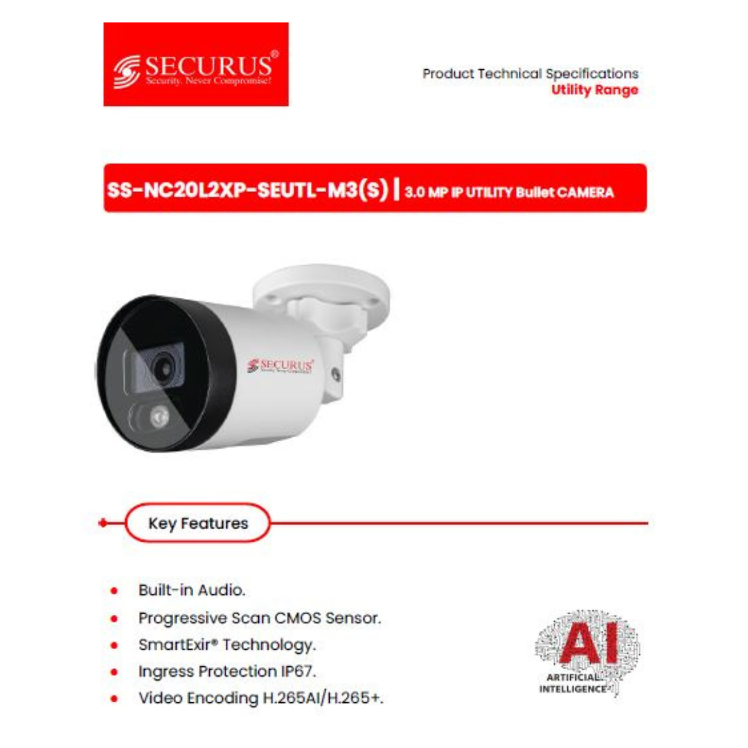 3MP IP BULLET CAMERA SS-NC20L2XP-SEUTL-M3(S) BRAND:SECURUS SMART EXIR TECHNOLOGY