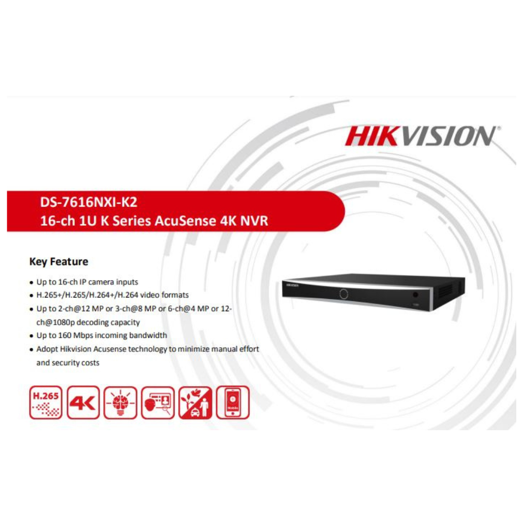 4MP 16 CHANNEL NVR METAL DS-7616NXI-K2 BRAND:HIKVISION