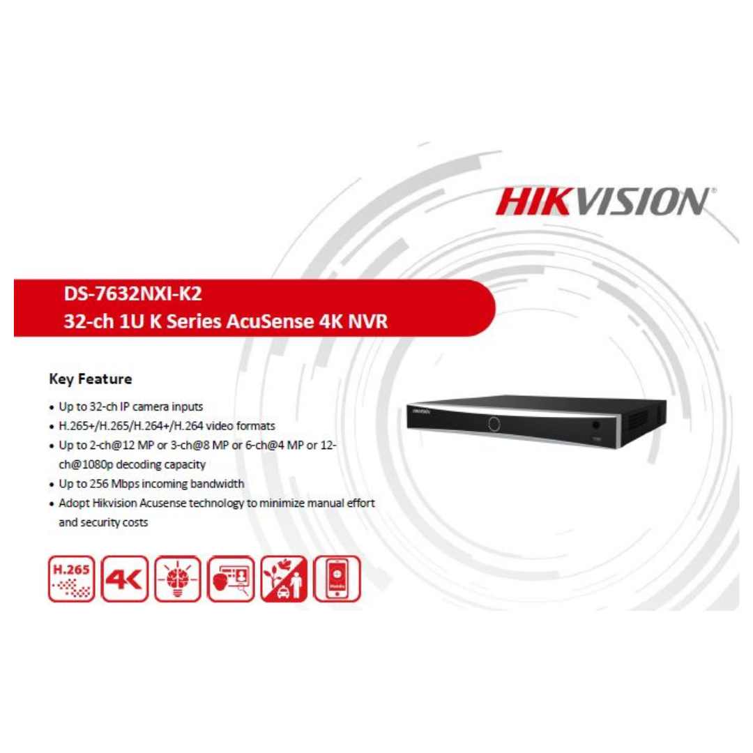 4MP 32 CHANNEL NVR METAL DS-7632NXI-K2 BRAND:HIKVISION
