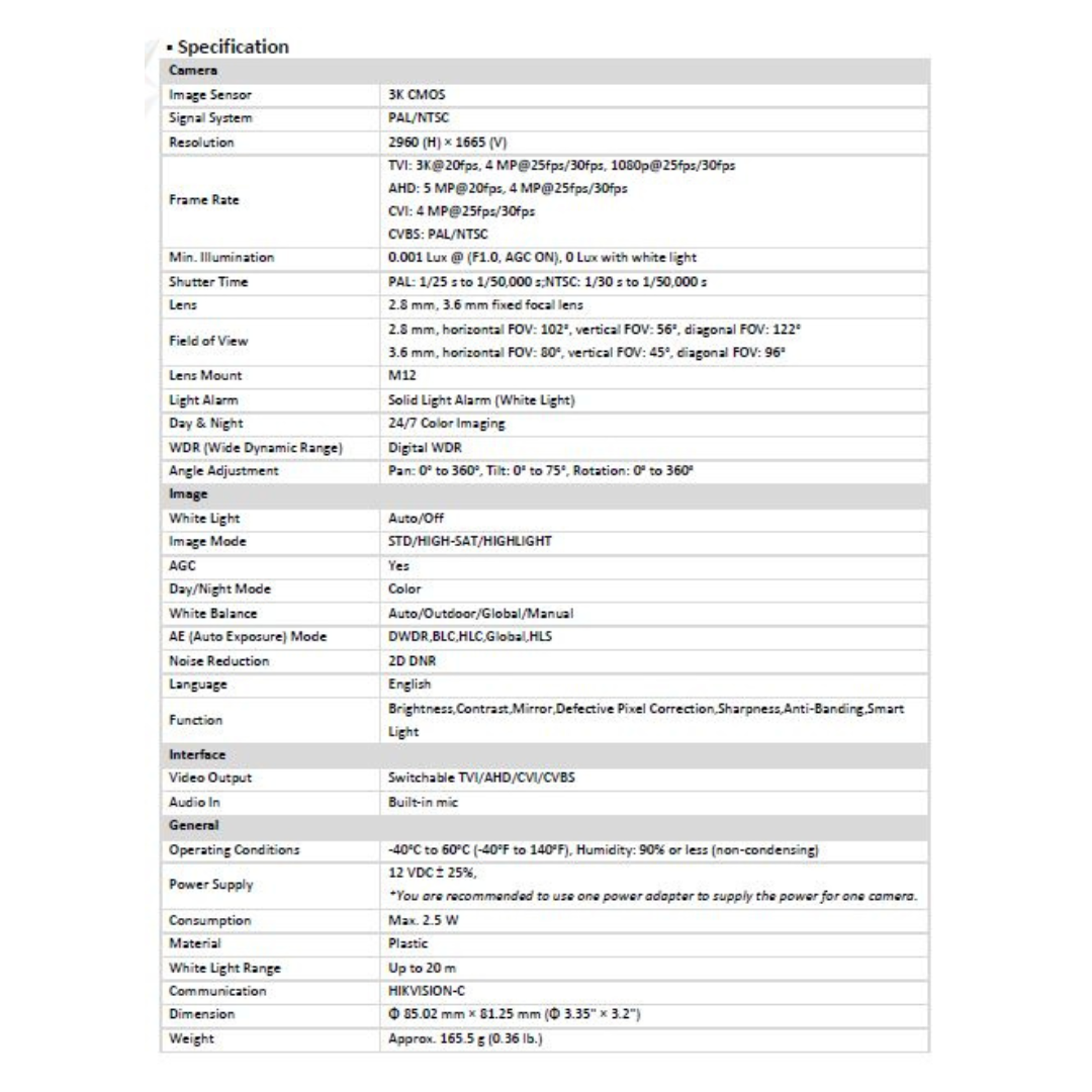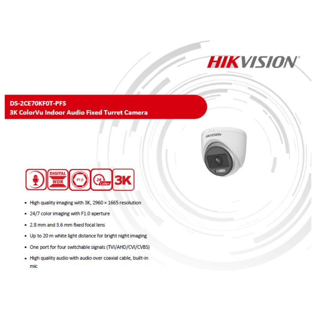 5MP COLOR VU DOME CAMERA DS-2CE70KF0T-PFS BRAND:HIKVISION