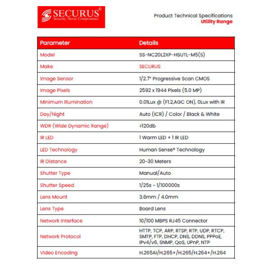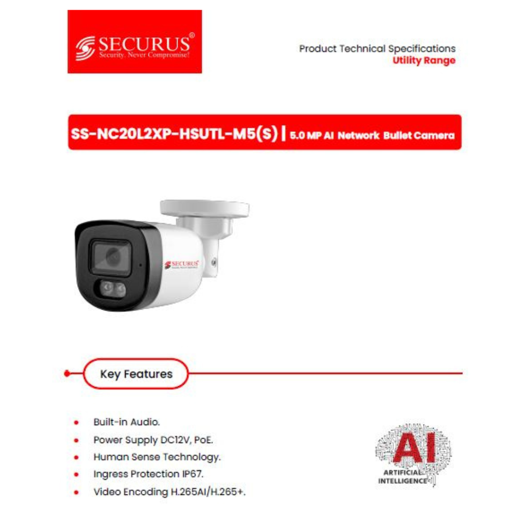 5MP IP BULLET CAMERA SS-NC20L2XP-HSUTL-M5(S) BRAND:SECURUS HUMAN SENSE TECHNOLOGY