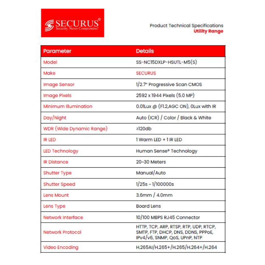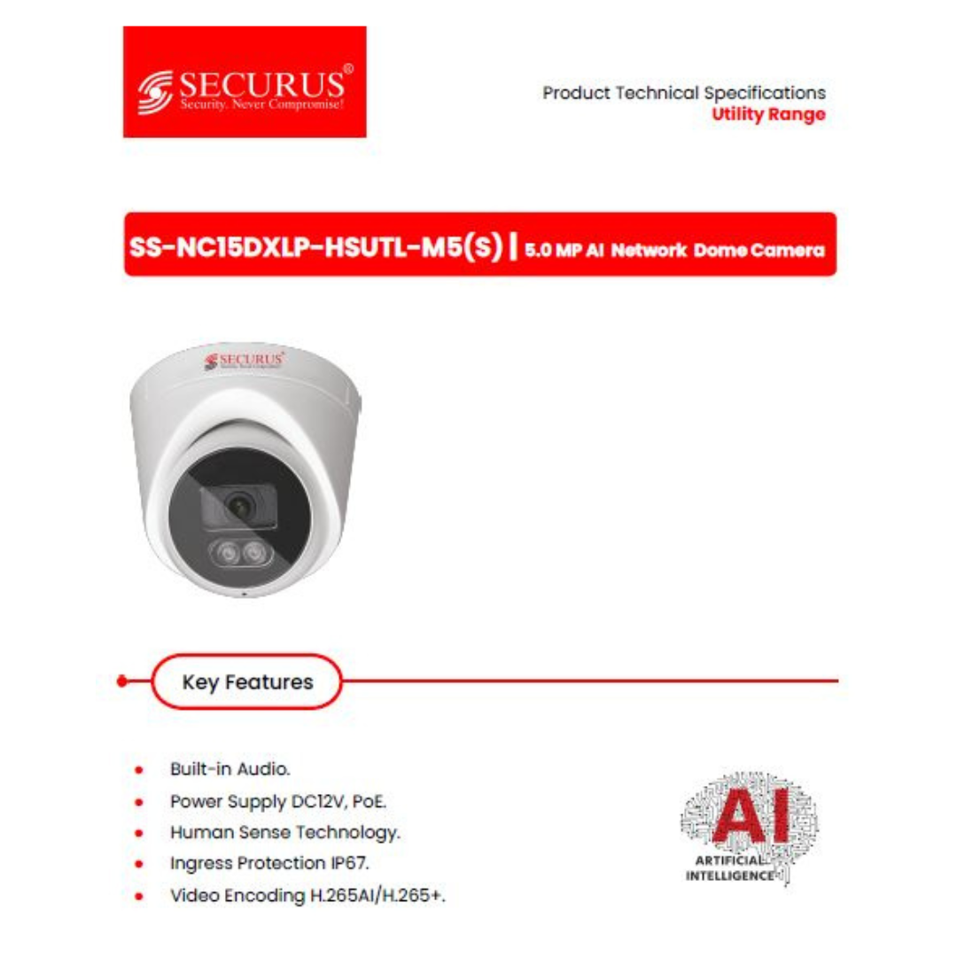 5MP IP DOME CAMERA SS-NC15DXLP-HSUTL-M5(S) BRAND:SECURUS HUMAN SENSE TECHNOLOGY