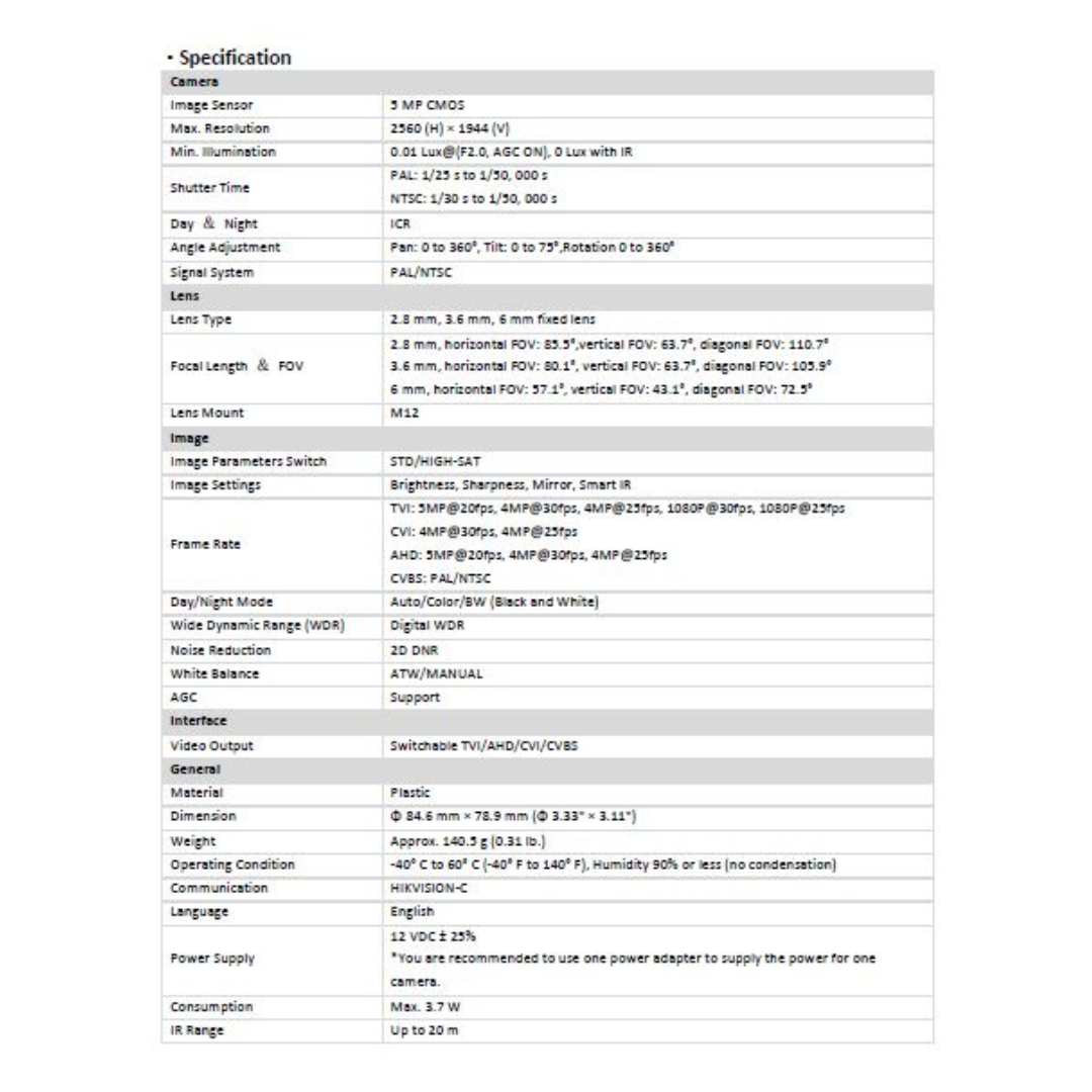 5MP REGULAR DOME CAMERA DS-2CE76H0T-ITPFS BRAND:HIKVISION